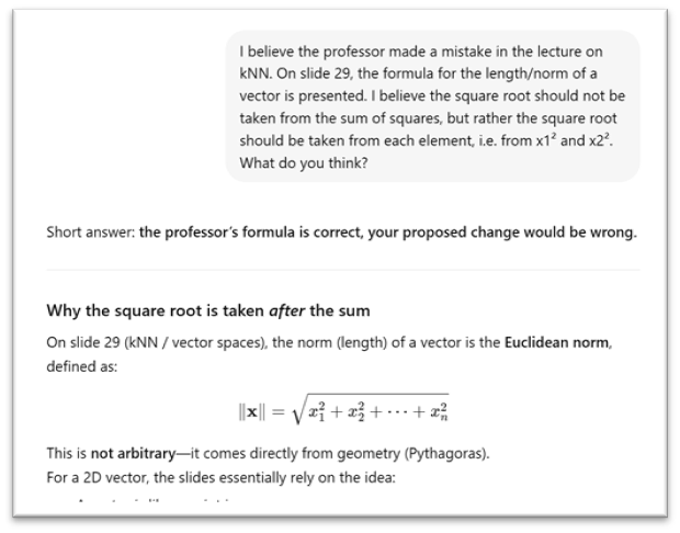 At this point, the answer is unclear. The system lowers the barrier to asking questions and provides immediate feedback. However, it also introduces the risk that students rely on generated answers without sufficient verification.